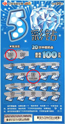 “5彩鉆”是以5個華彩炫目、美輪美奐的鉆石為主題設(shè)計的一款五聯(lián)票。該票面值20元,共有20次中獎機會,最高獎金100萬元,玩法也簡單易懂:刮開覆蓋膜,如果任意一個“我的號碼”與任意一個“中獎號碼”相同,即可獲得該“我的號碼”下方所對應(yīng)的獎金;如果刮出“鉆石”圖符,即可獲得該圖符下方所對應(yīng)獎金的5倍。中獎獎金兼中兼得。