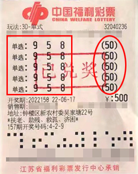 6月17日,一位3D游戲高手在第2022158期通過單選倍投方式斬獲獎金26萬元。