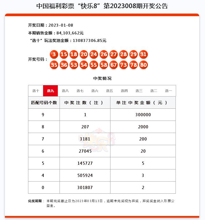 暢玩福彩快樂8,新年也要快樂8。1月8日,在全省快樂8游戲3600萬元派獎活動的加持下,我市一位幸運市民喜獲快樂8第2023008期大獎64.3萬余元。