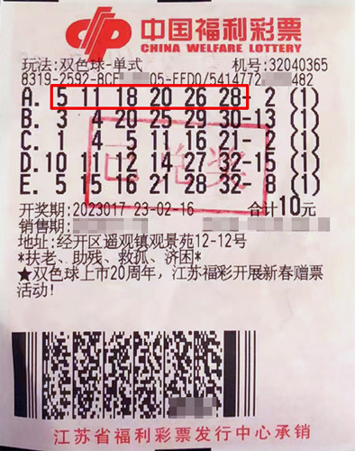 2月16日,雙色球第2023017期開出紅球5、11、18、20、26、28,藍(lán)球12。當(dāng)期經(jīng)開區(qū)遙觀鎮(zhèn)32040365福彩投注站喜出1注二等獎。據(jù)了解,中獎市民楊先生(化名)是福彩的老朋友,當(dāng)期他在店里花10元錢隨機投注了五組單式號碼,開獎后經(jīng)核對,票面上第一組號碼紅球全中,幸運擊中二等獎,攬獲獎金12.2萬余元。