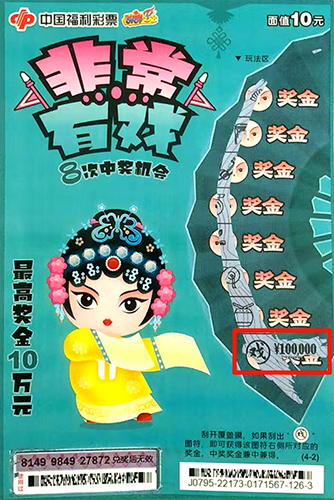據(jù)了解,中獎(jiǎng)?wù)呃钕壬歉2实睦贤婕?,近日購買刮刮樂消遣時(shí),在其中一張10元面值的“非常有戲”彩票中刮出“戲”字圖符,根據(jù)游戲規(guī)則,中得對(duì)應(yīng)獎(jiǎng)金10萬元。