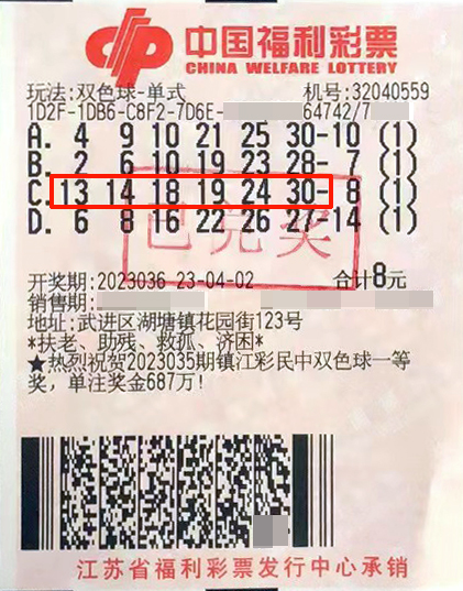 據(jù)了解,該獎出自武進區(qū)湖塘鎮(zhèn)32040559福彩投注站。當(dāng)期幸運市民在店里花8元錢投注了4組單式號碼。經(jīng)與開獎號碼“紅球13、14、18、19、24、30,藍球9”核對,其中一組號碼紅球全中,攬獲二等獎獎金6.2萬余元。