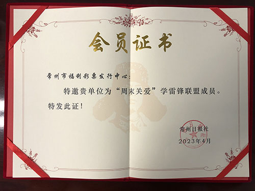 加入“周末關(guān)愛”學雷鋒聯(lián)盟,常州福彩將進一步弘揚傳承雷鋒精神,秉承“奉獻、友愛、互助、進步”的志愿服務精神,與更多的社會愛心力量一起,為助力解決群眾急難愁盼、書寫新時代文明實踐新篇章發(fā)揮更大作用、貢獻更多能量。