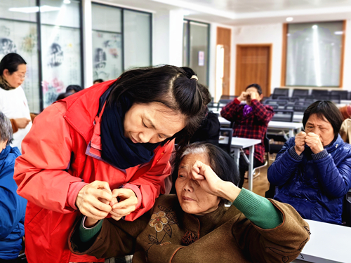 活動(dòng)伊始,專業(yè)老師向老人們介紹了按導(dǎo)的中醫(yī)意涵,講解了眼部結(jié)構(gòu)的奧秘以及常見(jiàn)的眼部疾病。隨后,在按導(dǎo)志愿者的操作示范下,老人們按步實(shí)踐,在聚精會(huì)神中跟隨節(jié)奏,輕輕按壓眼部穴位,感受著微妙的變化。大家表示,這樣的教學(xué)既直觀又實(shí)用,讓他們受益匪淺。
