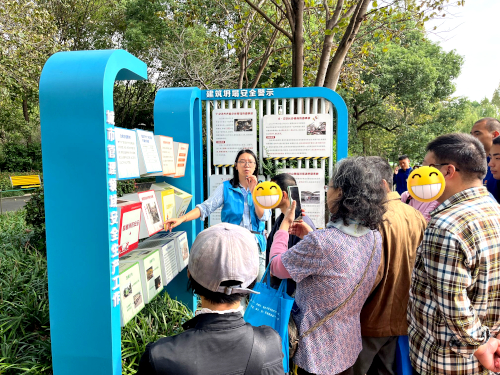 康復(fù)員一行人踏上東京120度經(jīng)線,步入園內(nèi)的安全文化主題長廊。社工一步一講,向康復(fù)員介紹建筑安全、城市管理、燃?xì)獍踩⒔煌ò踩?、防電信網(wǎng)絡(luò)詐騙等與日常生活息息相關(guān)的安全知識。