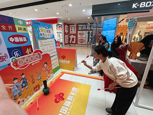 在互動(dòng)游戲區(qū),“投壺取福”這項(xiàng)趣味活動(dòng)收獲了大批“粉絲”,為大家?guī)頍o盡歡樂。參與游戲并投中者還可獲得一份刮刮樂獎(jiǎng)品,在輕松娛樂的同時(shí),期待一份好運(yùn)的降臨。