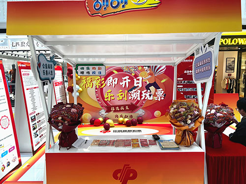 幸運(yùn)打卡區(qū)集合了各種潮玩元素,喜慶的自拍墻、精美的刮刮樂花束吸引了不少市民打卡。展區(qū)還介紹了全省快樂8“福運(yùn)雙至 快樂加倍”活動(dòng),并發(fā)布了溧陽福彩銷售網(wǎng)點(diǎn)招募令。