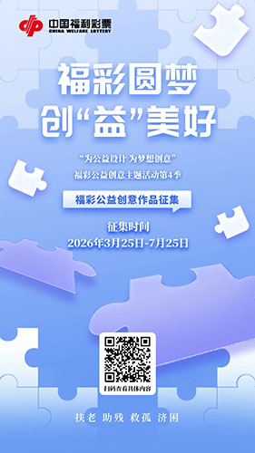 福彩圓夢,創(chuàng)“益”美好。中國福彩“為公益設(shè)計·為夢想創(chuàng)意”第四屆公益創(chuàng)意主題活動煥新登場,邀您通過海報、視頻、攝影等形式,講述福彩“扶老、助殘、救孤、濟困”的初心,展現(xiàn)福彩責(zé)任擔(dān)當(dāng),科普福彩知識,定格真實動人的公益瞬間。