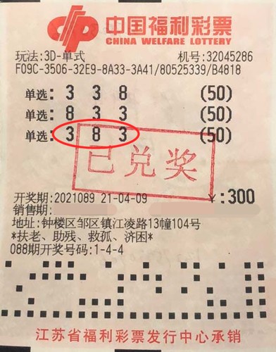 據(jù)了解,其中一位中獎(jiǎng)?wù)咧煜壬ɑ┦?/span>3D游戲的鐵桿粉絲,選號(hào)方面很有心得。4月9日是3D第2021089期的開獎(jiǎng)日。當(dāng)期他在鐘樓區(qū)鄒區(qū)鎮(zhèn)32045286福彩投注站對(duì)號(hào)碼“383”進(jìn)行了50倍單選投注,幸運(yùn)擊中開獎(jiǎng)號(hào)碼。根據(jù)正在開展的3D游戲800萬元促銷活動(dòng)規(guī)則,每注單選獎(jiǎng)金增長(zhǎng)至1200元,本次朱先生共計(jì)中得獎(jiǎng)金6萬元。