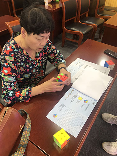 培訓活動贏得了選手們的交口稱贊。67歲的朱阿姨談到魔方,有很多感慨:參加魔方比賽原本是希望保持頭腦敏捷,預防老年癡呆。參加培訓后,發(fā)現(xiàn)魔方運動還可以培養(yǎng)耐心和堅持的精神。每次擰對一面,我都會不由自主地笑出來,很有成就感!