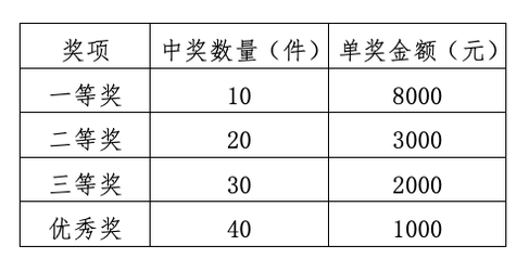專家評審團從100件入圍作品最終評選出10件一等獎作品、20件二等獎作品、30件三等獎作品以及40件優(yōu)秀獎作品。其中一等獎作品將獲得8000元的獎金(稅前),其他入圍作品也會有相應的獎金獎勵。