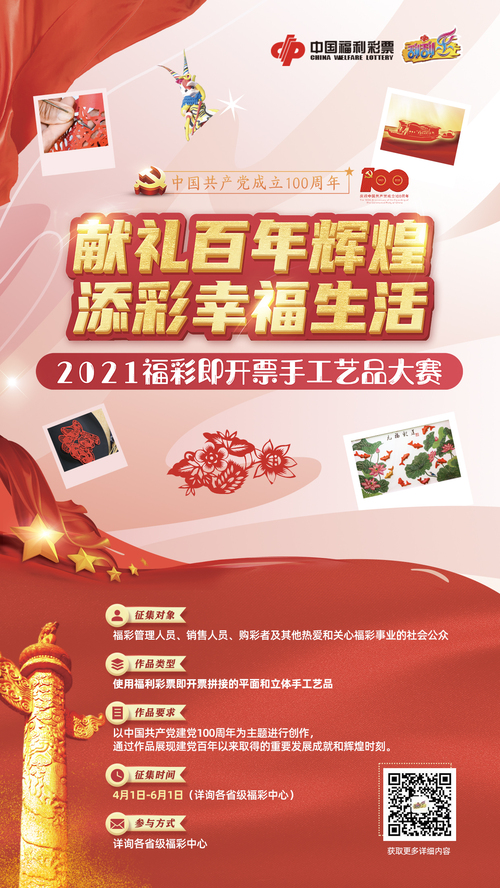 2021年是中國共產(chǎn)黨成立100周年,也是十四五開局之年。新征程,新使命,為獻禮建黨百年,中國福利彩票發(fā)行管理中心(以下簡稱中福彩中心)于41起,組織開展即開票手工藝品大賽。大賽以獻禮百年輝煌,添彩幸福生活為創(chuàng)作主題,以福彩即開票手工藝品為載體,展現(xiàn)百年奮斗歷程,記錄黨領導下的幸福生活,謳歌建黨以來取得的偉大成就。
