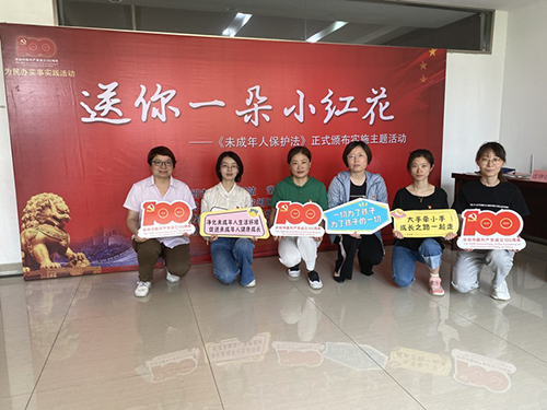 5月29日上午,“送你一朵小紅花”——《未成年人保護(hù)法》正式頒布實(shí)施主題活動(dòng)在飛龍社區(qū)啟動(dòng)。通過(guò)開(kāi)展專題學(xué)習(xí)培訓(xùn)、現(xiàn)場(chǎng)宣傳、知識(shí)問(wèn)答等系列活動(dòng),全面宣傳中國(guó)共產(chǎn)黨關(guān)愛(ài)保護(hù)未成年人的黨史知識(shí),宣傳未成年人關(guān)愛(ài)保護(hù)的基本常識(shí),強(qiáng)化社會(huì)各界積極參與未成年人關(guān)愛(ài)保護(hù)的思想認(rèn)識(shí),廣泛凝聚依法保護(hù)未成年人合法權(quán)益的社會(huì)共識(shí),為培養(yǎng)有理想、有道德、有文化、有紀(jì)律的社會(huì)主義建設(shè)者和接班人提供合力。活動(dòng)現(xiàn)場(chǎng),市福彩中心代表上臺(tái)向社區(qū)兒童贈(zèng)送文具禮品,向孩子們送去福彩的節(jié)日祝福。