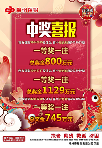 截至雙色球第2021074期,全省一等獎(jiǎng)派獎(jiǎng)獎(jiǎng)金全部用完,雙色球感恩回饋月派獎(jiǎng)活動(dòng)結(jié)束。據(jù)了解,活動(dòng)期間全省共中出7注一等獎(jiǎng),共派出一等獎(jiǎng)獎(jiǎng)金1950萬(wàn)元。我市包攬了其中的3注一等獎(jiǎng),其中第2021063期、第2021069期各派出獎(jiǎng)金300萬(wàn)元,第2021074期派出獎(jiǎng)金150萬(wàn)元。