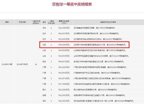 7月4日晚,雙色球第2021074期開(kāi)出紅球04、05、09、14、25、27,藍(lán)球07。當(dāng)期全國(guó)開(kāi)出一等獎(jiǎng)14注,單注獎(jiǎng)金582萬(wàn)多元。全省唯一的1注一等獎(jiǎng)出自我市鐘樓區(qū)星港花園商業(yè)街32045230福彩投注站,中獎(jiǎng)彩票為一張“8+2”復(fù)式票,共中出1注一等獎(jiǎng)、1注二等獎(jiǎng)、12注三等獎(jiǎng)、27注四等獎(jiǎng)、15注五等獎(jiǎng),合計(jì)中得獎(jiǎng)金595多萬(wàn)元。根據(jù)全省雙色球感恩回饋月活動(dòng)規(guī)則,一等獎(jiǎng)可額外獲得150萬(wàn)元派獎(jiǎng)獎(jiǎng)金,因此,該張中獎(jiǎng)彩票共計(jì)中得獎(jiǎng)金745萬(wàn)多元。
