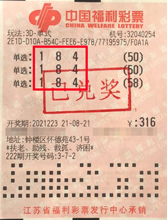 據(jù)了解,該獎(jiǎng)出自鐘樓區(qū)懷德苑32040254福彩投注站。中獎(jiǎng)市民梁先生(化名)是福彩鐵桿粉絲,尤其喜愛3D和雙色球。當(dāng)期梁先生在店里對(duì)號(hào)碼“1、8、4”進(jìn)行了158倍單選投注,幸運(yùn)擊中開獎(jiǎng)號(hào)碼,一舉攬獲獎(jiǎng)金16.4萬余元。