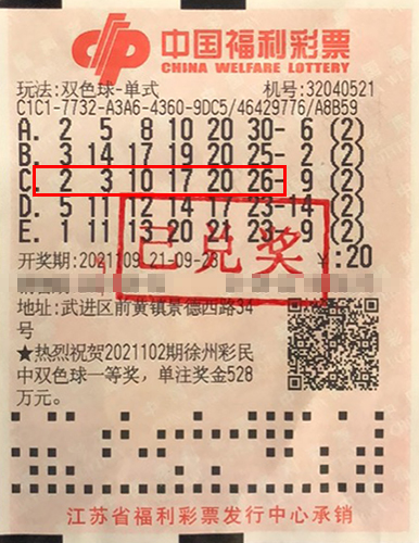 據(jù)了解,獎出自武進區(qū)前黃鎮(zhèn)32040521福彩投注站。中獎市民蔡先生(化名)是一位雙色球老粉,當(dāng)期在店里憑經(jīng)驗自選5組單式號碼,并分別進行了2倍投注,開獎后經(jīng)與開獎號碼紅球020310172026,藍球16核對,其中1號碼紅球全中,幸運中得2注二等獎共計攬獲獎金34萬余元