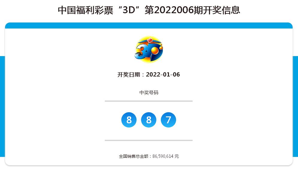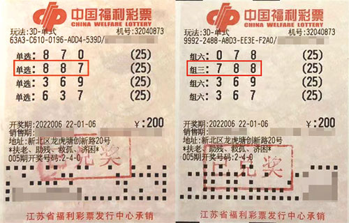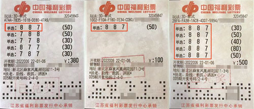 16日晚,3D游戲第2022006期開出號碼“887”。我市兩位幸運市民同期喜獲3D獎金。