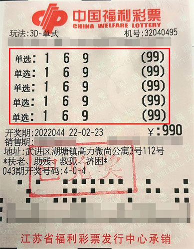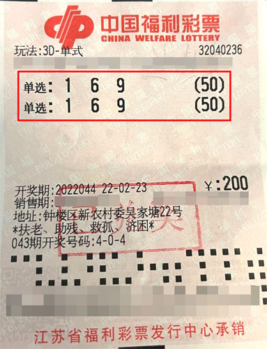據(jù)了解,其中一張中獎票出自鐘樓區(qū)32040236福彩投注站。中獎市民是3D游戲粉絲,當期他在店里對號碼“169”進行了100倍單選投注,幸運擊中開獎號碼,攬獲獎金10.4萬元。
