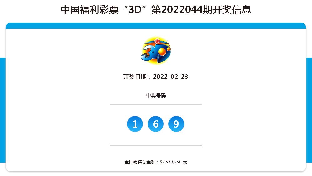 223日晚,3D游戲第2022044期開獎,開出號碼“169”。我市兩位幸運市民同期喜獲3D大獎。