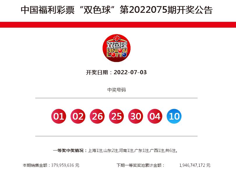 7月3日晚,雙色球第2022075期開出紅球01、02、04、25、26、30,藍(lán)球10。當(dāng)期我市一位市民朋友幸運中得1注二等獎,攬獲獎金28萬余元。