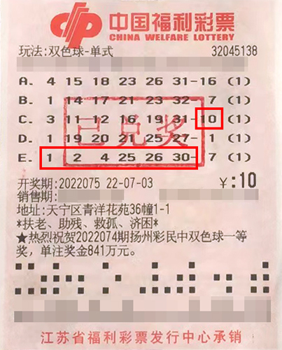 據(jù)了解,該獎出自天寧區(qū)青洋花苑32045138福彩投注站,中獎票為一張隨機五組單式票。中獎市民說,他購彩有些年頭了,但多是機選投注,當(dāng)期他在店里花10元錢隨機打了張票,沒想到命中率特別高,其中一組號擊中了紅球,另一組號擊中了藍(lán)球,中得1注二等獎和1注六等獎。他表示,中獎固然十分開心和激動,但仍會保持清醒的頭腦,堅持理性購彩,隨手獻一份愛心。