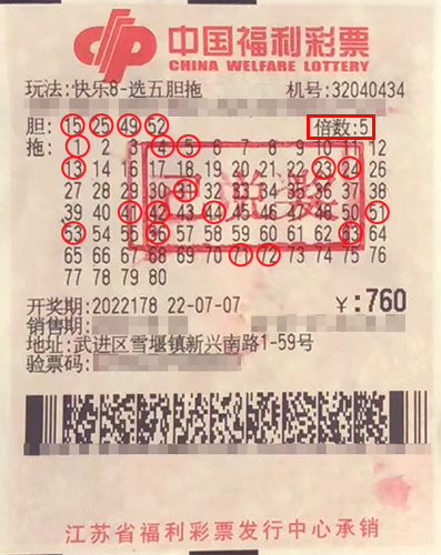 據(jù)了解,該獎(jiǎng)出自武進(jìn)區(qū)雪堰鎮(zhèn)32040434福彩投注站。當(dāng)期幸運(yùn)市民小朱(化名)在店里自選了一組選五四膽全拖號(hào)碼,并進(jìn)行了5倍投注,幸運(yùn)中得80選五中五300選五中四,共計(jì)攬獲獎(jiǎng)8.6萬余元。