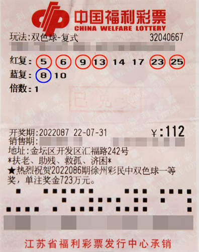 7月31日,我市喜誕1注雙色球頭獎(jiǎng),這是7月份我市中出的第2注雙色球一等獎(jiǎng)。