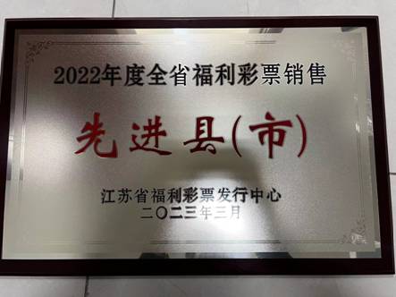2022年,溧陽市福彩工作取得了8485萬元的銷售成績,受到江蘇省福利彩票發(fā)行中心表彰,被評為“2022年度全省福利彩票銷售先進縣(市)”。