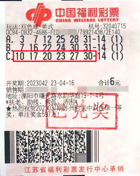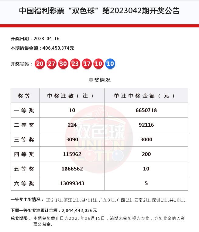 近日,我市福彩喜報頻傳。416日晚,雙色球第2023042期開出紅球101720232730,藍球10。當期二等獎開出224注,單注獎金9.2萬余元,我市喜迎1注二等獎。