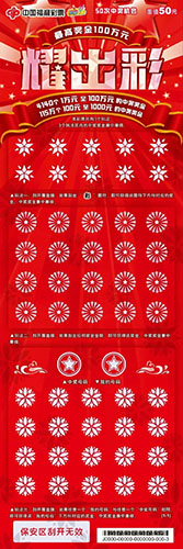 “耀出彩”的設(shè)計(jì)主色為耀眼的“中國(guó)紅”,從票面主題就能感受到“閃耀”和“炫彩”的味道,整體配以流光溢彩、亮麗炫酷的鐳射風(fēng)格點(diǎn)綴,既能喚起彩友們對(duì)美好世界的無(wú)限遐想,又透露出滿滿的年輕力。玩法區(qū)加入盛開(kāi)的花朵、閃耀的五星徽章元素,給人滿滿的儀式感。