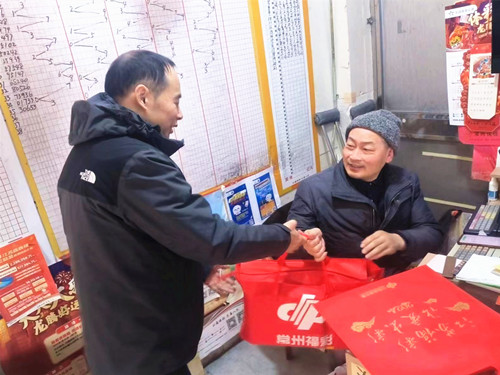 2月6日,常州市民政局副局長孫啟明走訪慰問福彩銷售點,向他們致以新春祝福和誠摯問候。市福彩中心主任楊樂民及職工代表陪同走訪。