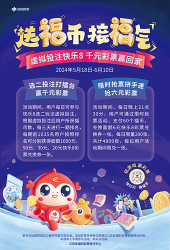 5月18日至6月10日,江蘇福彩推出快樂8“送福幣接福氣”數(shù)字化營銷活動。