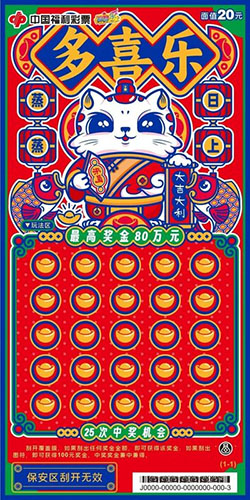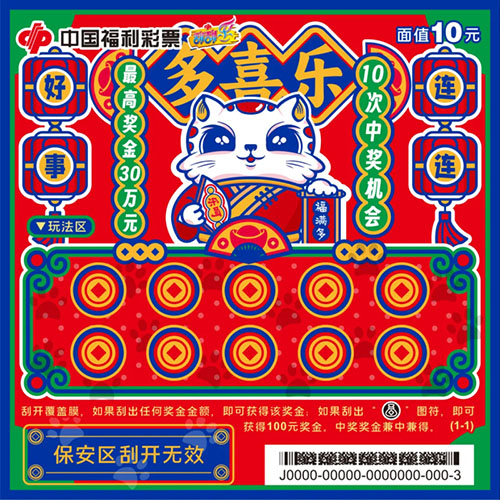 傳統(tǒng)中國紅撞上國潮,刮刮樂新票“多喜樂”在江蘇上市,10元、20元兩種面值供您選擇,最高獎(jiǎng)金80萬元。