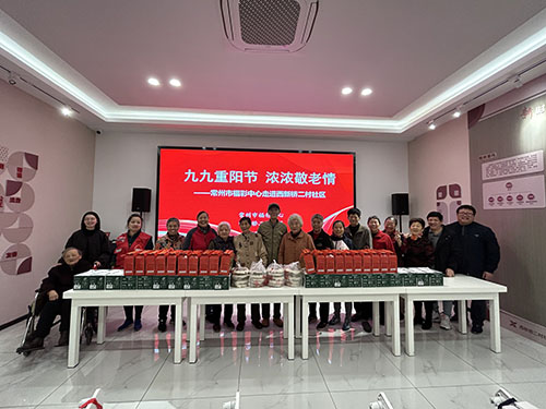 活動(dòng)現(xiàn)場(chǎng),常州市福彩中心向西新橋二村9位“照鄰助老”養(yǎng)老志愿者和9位社區(qū)被養(yǎng)老志愿者照顧的高齡老人發(fā)放重陽(yáng)糕、牛奶、雞蛋等生活用品,祝福他們健康長(zhǎng)壽,樂享晚年。