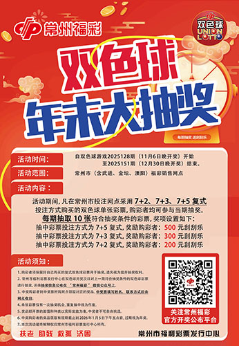 復式投注雙色球,抽獎禮贈刮刮樂。為進一步回饋廣大購彩者,常州市福彩中心將開展雙色球游戲年末大抽獎活動。