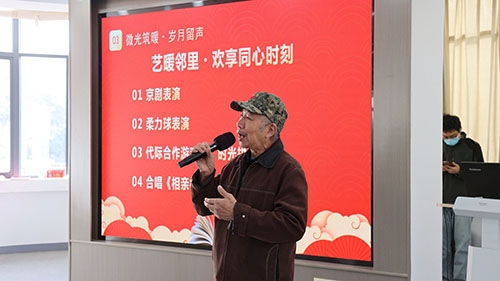 “微光筑暖?歲月留聲”環(huán)節(jié)成為整場活動的情感高潮。曾參與原子彈制造的“硬核”老人、多年如一日自愿打掃社區(qū)衛(wèi)生的熱心阿姨,各自分享了自己的人生片段——從為國奉獻的崢嶸歲月到鄰里守望的日常點滴,真摯的講述打動了在場每一位觀眾,青年代表獻上的鮮花,傳遞著代際之間的敬意與關(guān)懷。隨后,全國五好文明家庭代表帶來精彩的京劇演唱與柔力球表演,贏得陣陣掌聲;代際合作“時光拼圖”游戲中,老中青三代共同拼出社區(qū)舊貌新顏,在協(xié)作中拉近了心靈距離;黨員志愿者合唱的《相親相愛的一家人》,更將鄰里同心的氛圍推向頂點。