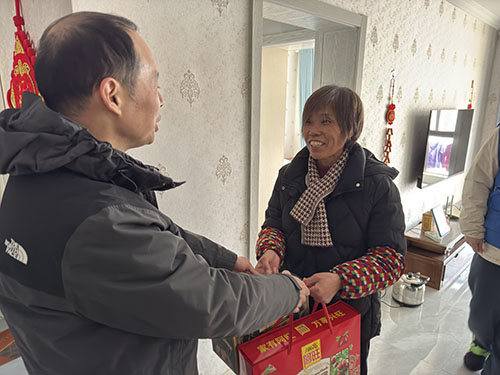 春歸大地,福暖人間。2月11日上午,常州市福彩中心與“周末關(guān)愛”欄目組一道走進(jìn)新北區(qū)三井街道飛龍社區(qū),開展“周末關(guān)愛·愛在福彩”新春慰問活動,向社區(qū)的兩戶急難家庭送上油、牛奶、堅果、餅干等慰問品和滿滿的新春祝福。