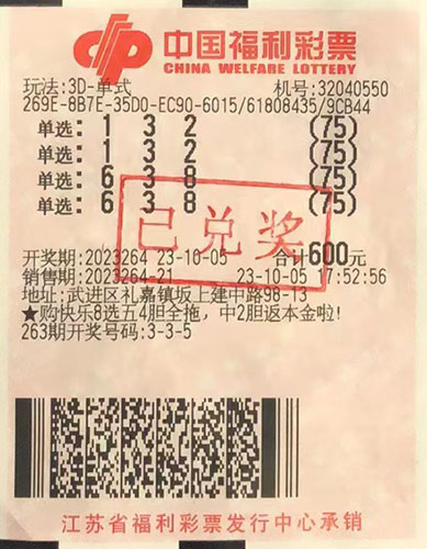 據(jù)了解,該獎出自武進(jìn)區(qū)禮嘉鎮(zhèn)32040550福彩投注站。當(dāng)期購彩者吳先生(化名)在店里對號碼“132”和“638”各進(jìn)行了150倍單選投注,幸運(yùn)擊中開獎號碼“638”,一舉攬獲獎金15.6萬元。