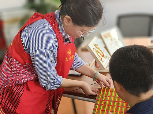 社工向參加活動(dòng)的孩子們介紹了非遺竹編技藝,并帶大家體驗(yàn)了非遺竹編畫的制作。孩子們抱著對(duì)竹編的濃濃好奇與興趣動(dòng)手實(shí)操,在一經(jīng)一緯的編織中感受傳統(tǒng)文化的魅力。一幅幅精致的竹編畫寄托了孩子們對(duì)未來的無限期待,表達(dá)了他們身為中華兒女的自豪之情以及對(duì)偉大祖國的美好祝福。