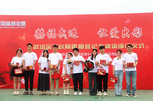 為倡導(dǎo)婚事簡辦、喜事新辦的文明新風(fēng)尚,6月6日,武進區(qū)福利彩票管理中心與區(qū)民政局婚姻登記處在武進區(qū)福彩主題公園內(nèi)聯(lián)合開展“囍福武進 讓愛出彩”集體頒證活動,為新人增福添彩。