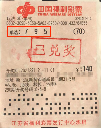 據(jù)了解,該獎(jiǎng)出自新北區(qū)新橋街道32040804福彩投注站。當(dāng)期幸運(yùn)市民李先生(化名)對(duì)號(hào)碼795進(jìn)行了70倍單選投注,結(jié)果幸運(yùn)擊中開獎(jiǎng)號(hào)碼,收獲滿滿驚喜。